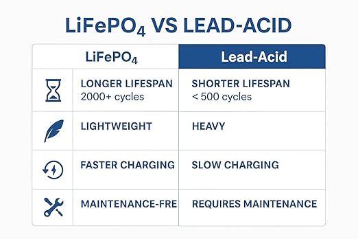 • Long Cycle Life – Provides over 2000+ deep charge cycles, lasting up to 5 times longer than traditional lead-acid batteries.