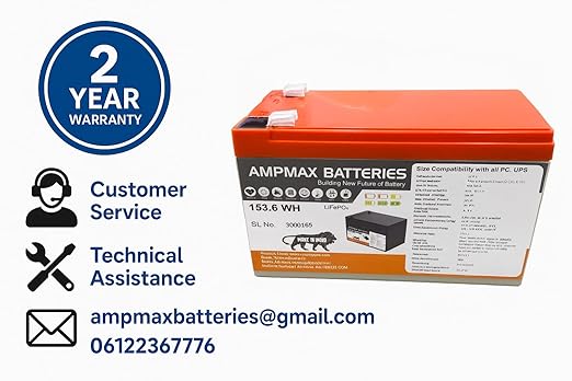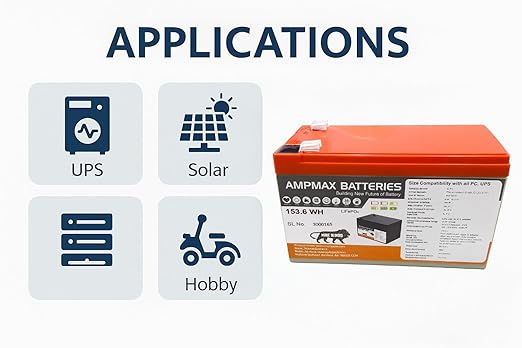 • Higher Backup in Same Size – Replace your old 12V 7Ah battery with Ampmax 12V 12Ah LiFePO₄ in the same size and enjoy longer UPS backup time for your computer.